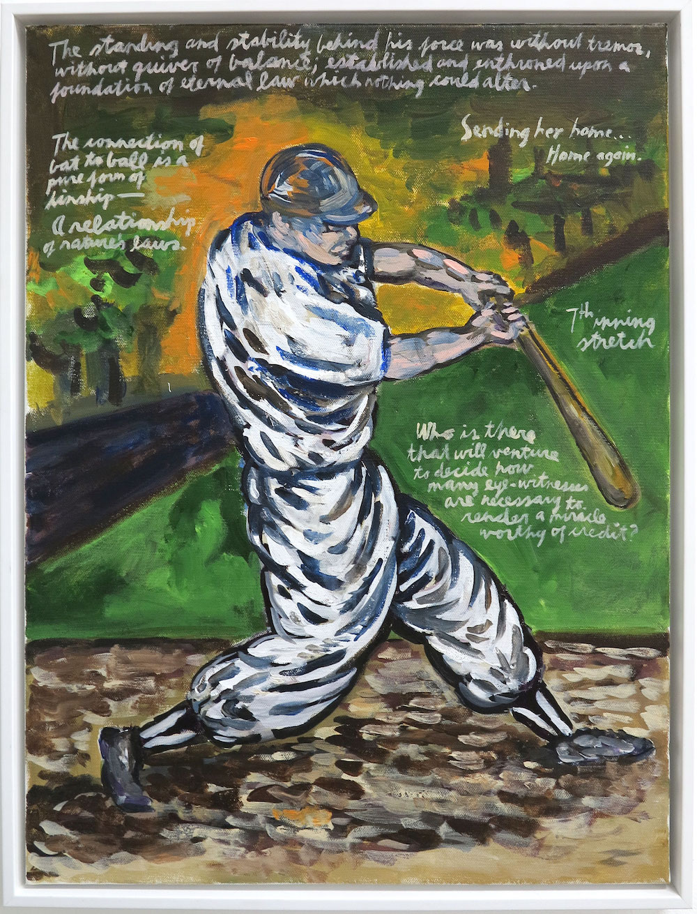 Apr 09 Love0 No Title (7th inning stretch)INQUIRE By CraigE MADE IN UK/MADE IN LA (2020) 24 x 18 inches Paint on canvas Signed and dated verso ‘Raymond Pettibon 7/96’